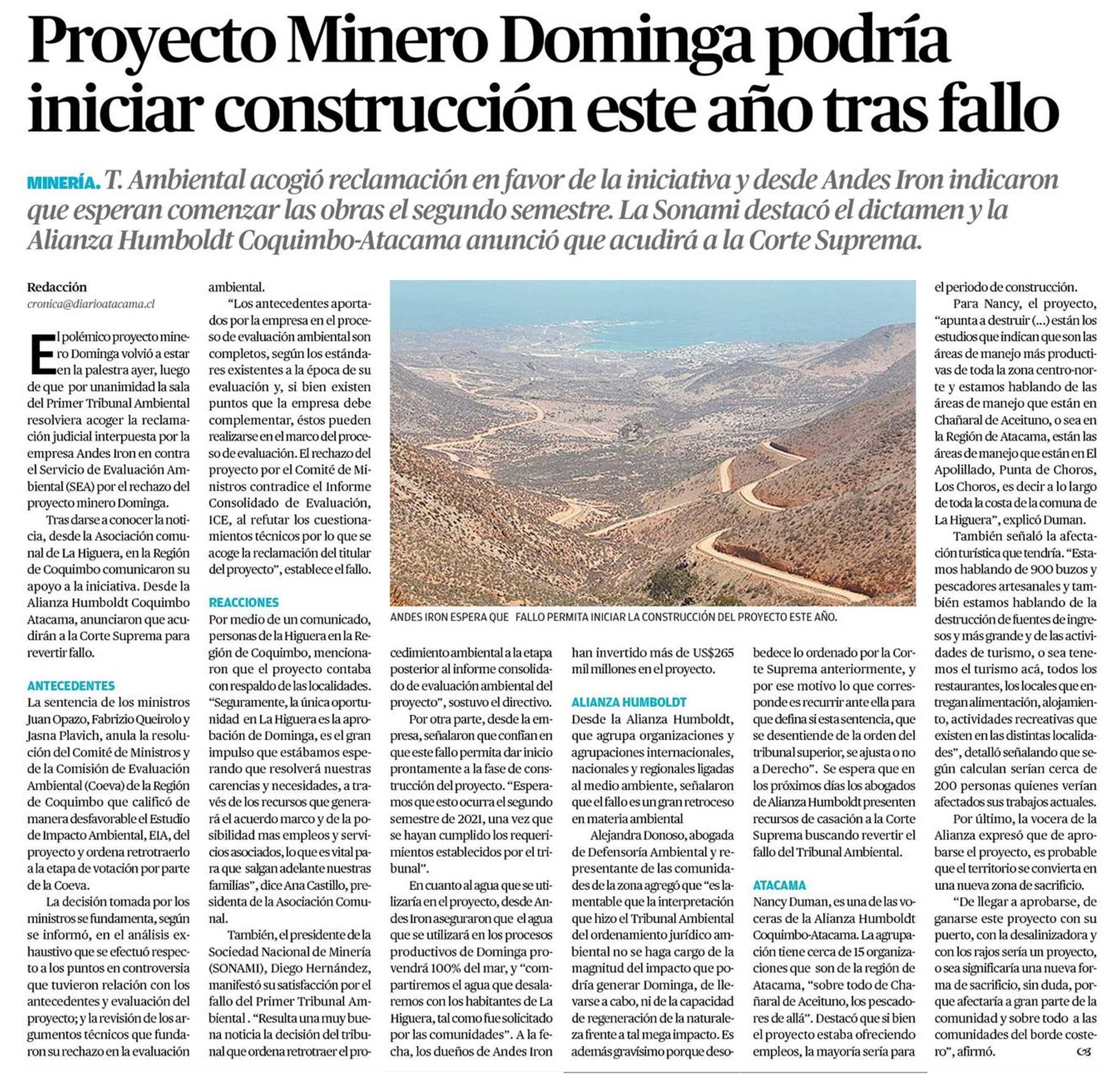 Hace ocho años, andes iron presentó su estudio de impacto ambiental para que minera dominga fuera evaluado por el sea (servicio de evaluación ambiental).
